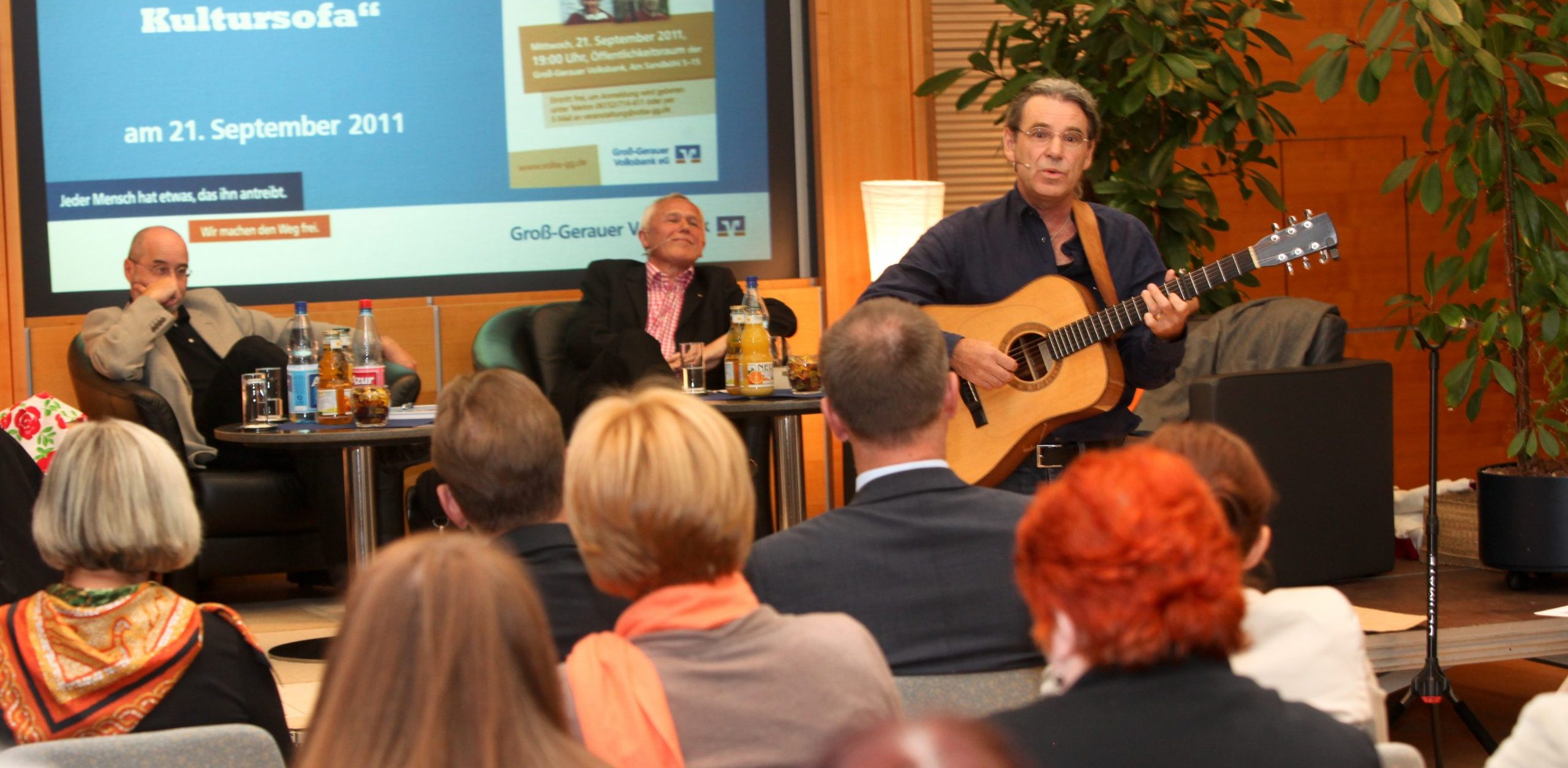 „… Der Gernsheimer Hans-Werner Brun ist ein musikalischer Geschichtenerzähler. Er eröffnete den Reigen der Kandidaten. Seine Lieder klingen manchmal sanft. “Mein Land am Fluss“ oder auch rotzfrech: „Die ham‘ mich beschisse“. Bei diesem Lied hatte er – nach dem Applaus zu urteilen- wohl jedem im Saal aus der ab und an gekränkten Seele gesprochen. Hans-Werner Brun sieht sich nicht als ausdrücklicher Mundartdichter. Seine Sprache ist ganz einfach die von Land und Leuten…“
