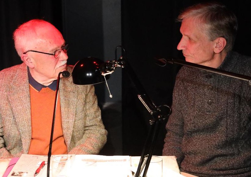„Gestern kam es im Darmstädter Keller-Klub im Rahmen der Veranstaltung „Heimkehr nach Darmstadt?“ auch zu einer Begegnung der beiden Journalisten Frank Schuster (re.) und W. Christian Schmitt, die nach der Buchpräsentation, die musikalisch von Hans-Werner Brun begleitet wurde, über das Thema „Journalismus gestern, heute, morgen“ diskutierten. Dazu folgt demnächst noch ein Video-Clip von Werner Wabnitz an dieser Stelle.“